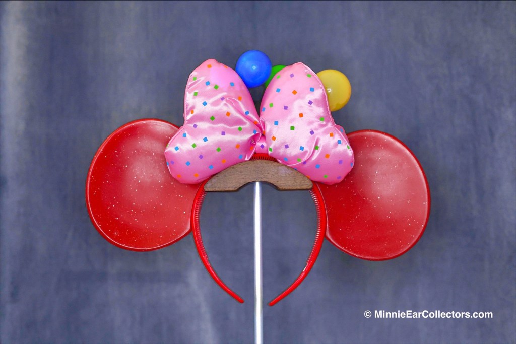 The Disney’s Party Express Minnie Ears were released at Tokyo Disneyland in 2001. The ears were created to match Minnie from the Party Express Parade. Disney’s Party Express ran January 19, 2001 to May 31, 2001.