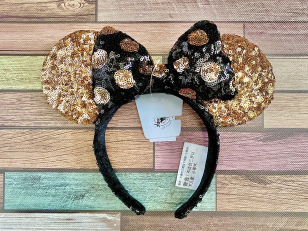 The Black and Gold Sequin Bow Ears were released at Walt Disney World on July 7th, 2020. These ears are similar in style to the Paris/US black and gold ears, though these have a sequin bow and headband instead of satin.