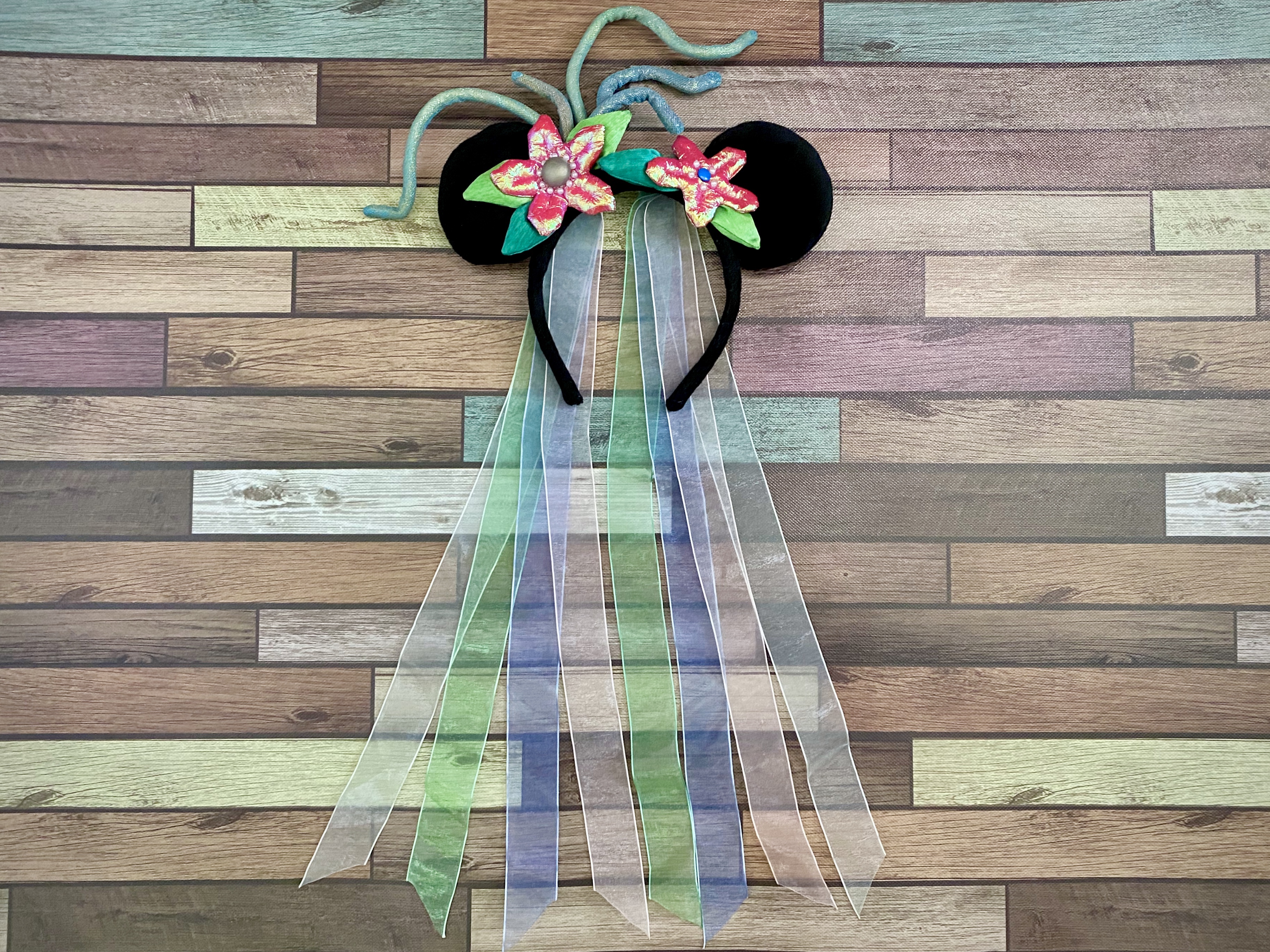 The Mermaid Sail Away Ears were released at Tokyo DisneySea in the early 2000’s. They were designed to be similar to the headpiece Mermaid Minnie wore for the “Sail Away” show that ran from 2001-2006 on the American Waterfront.