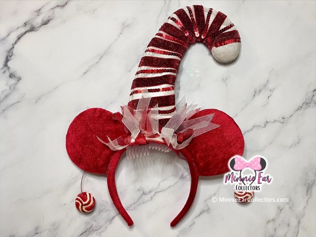 The Candy Cane Ears were released in 2010 at Walt Disney World and Disneyland. They were released along with the two versions of the tall Santa Ears. In 2010, a tall Candy Corn and Witch Ears were also released for Halloween.