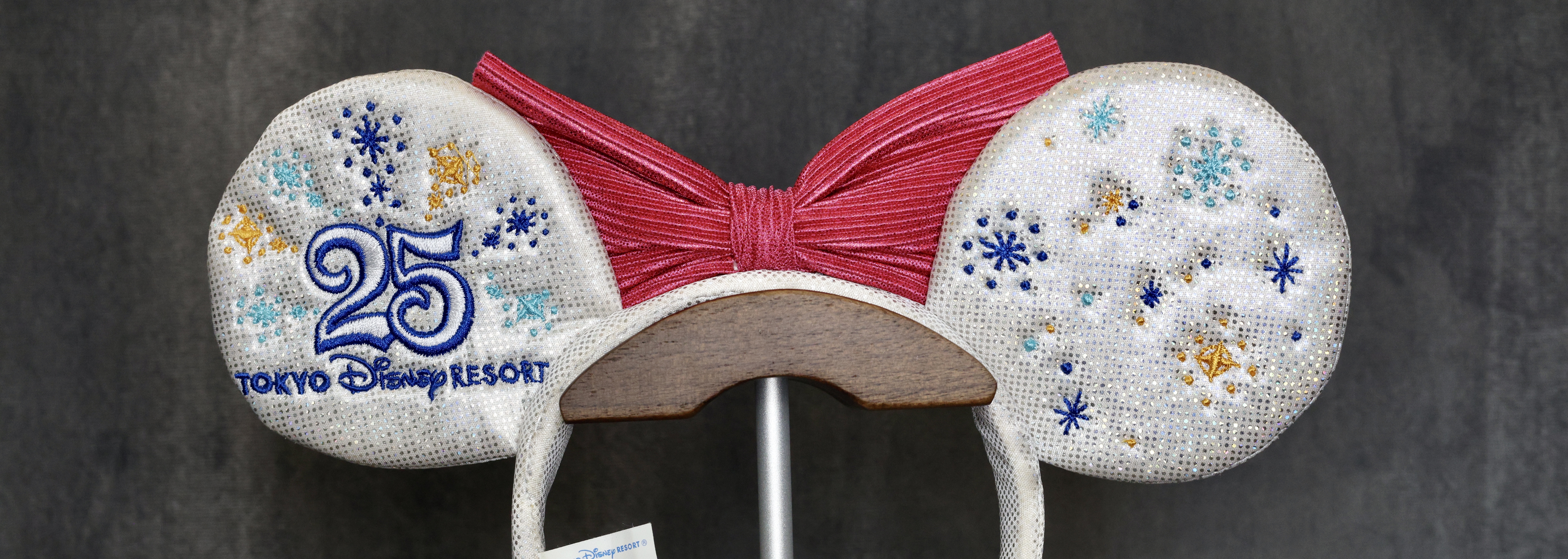 The Tokyo Disney Resort 25th Anniversary Ears were released for 25th Anniversary Celebration which ran April 15, 2008 to April 14, 2009.