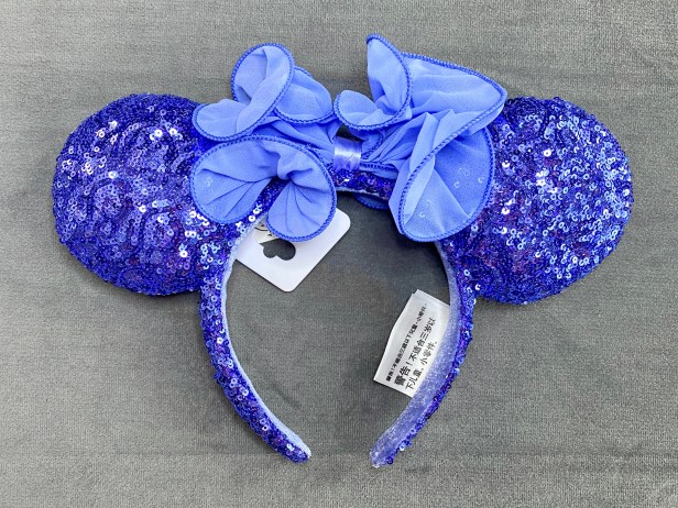 The ears feature a sequin color somewhat similar to that of the Purple Potion Ears with a chiffon ruffle bow, though these ears are slightly more of a blue hue.