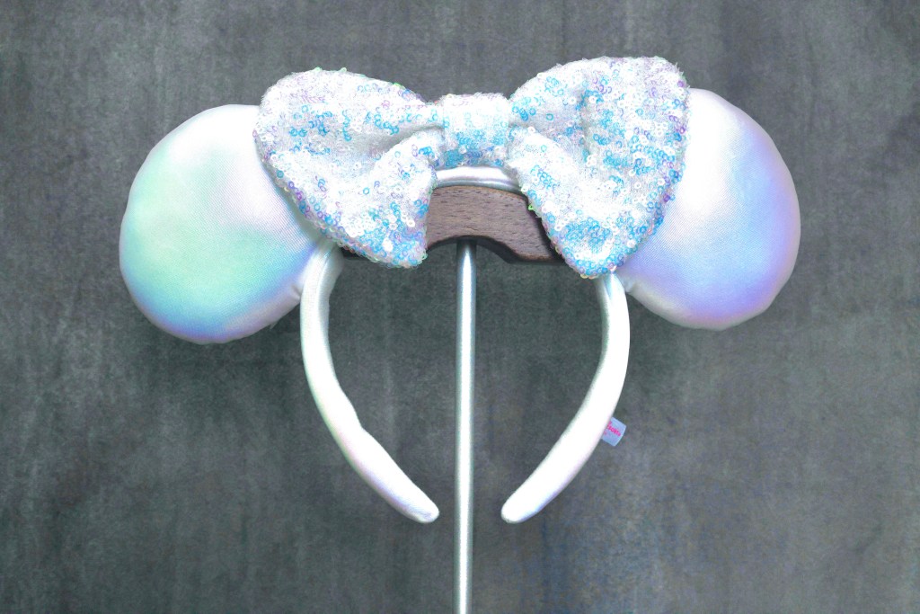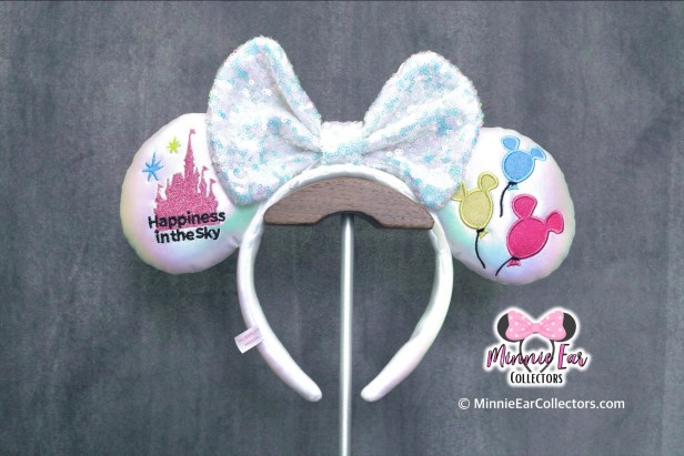 On June 23, 2021, Tokyo Disney Resort released a new pair of ears as part of the Happiness in the Sky Balloon themed collection. The ears featured a white plain iridescent side as well as a balloon and castle embroidered side allowing the ears to be worn with the bow towards either side.