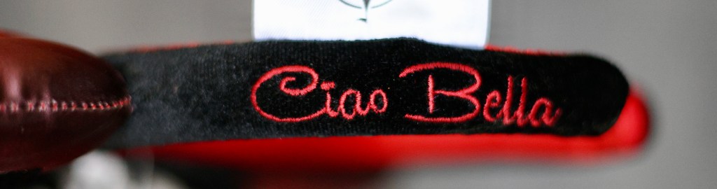 The Italian Minnie Scooter “Ciao Bella” Ears were first released in Hollywood Studios at Walt Disney World on June 30, 2021. The release was a mistake and the remaining stock was sent sent to EPCOT where they were released in the Italy pavilion at Il Bel Cristallo on July 29, 2021. The ears feature a satin print of the Piazza San Marco and St Mark’s Campanile (which is the same on the front and back of both ears) and black embroidered Minnie on a scooter on one ear. The double bow consists of a sequin, black bow and a black and white polka dot bow.