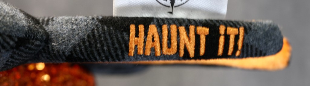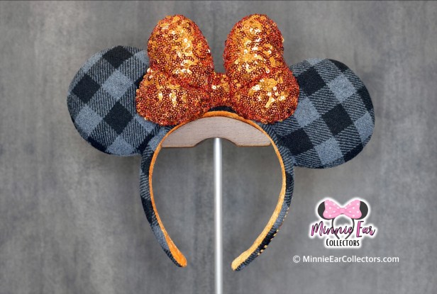 The Gray and Black Buffalo Plaid Ears were released first at Magic Kingdom at Walt Disney World on August 9, 2021. The new ears consist of a black and gray buffalo plaid flannel and a large sequin bow. Lastly, they are embroidered in orange with the phrase “Haunt It” on the side of the headband. The ears are part of the 2021 Halloween merchandise collection that included a matching Loungefly.