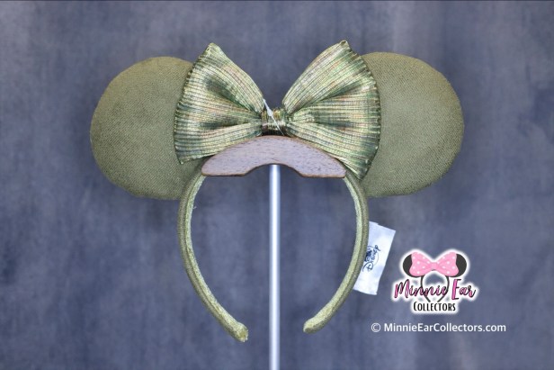 The Olive Green Minnie Ears were first released at Disneyland on October 7, 2021. The ears feature a sage green suede like fabric with a matching crinkle bow.