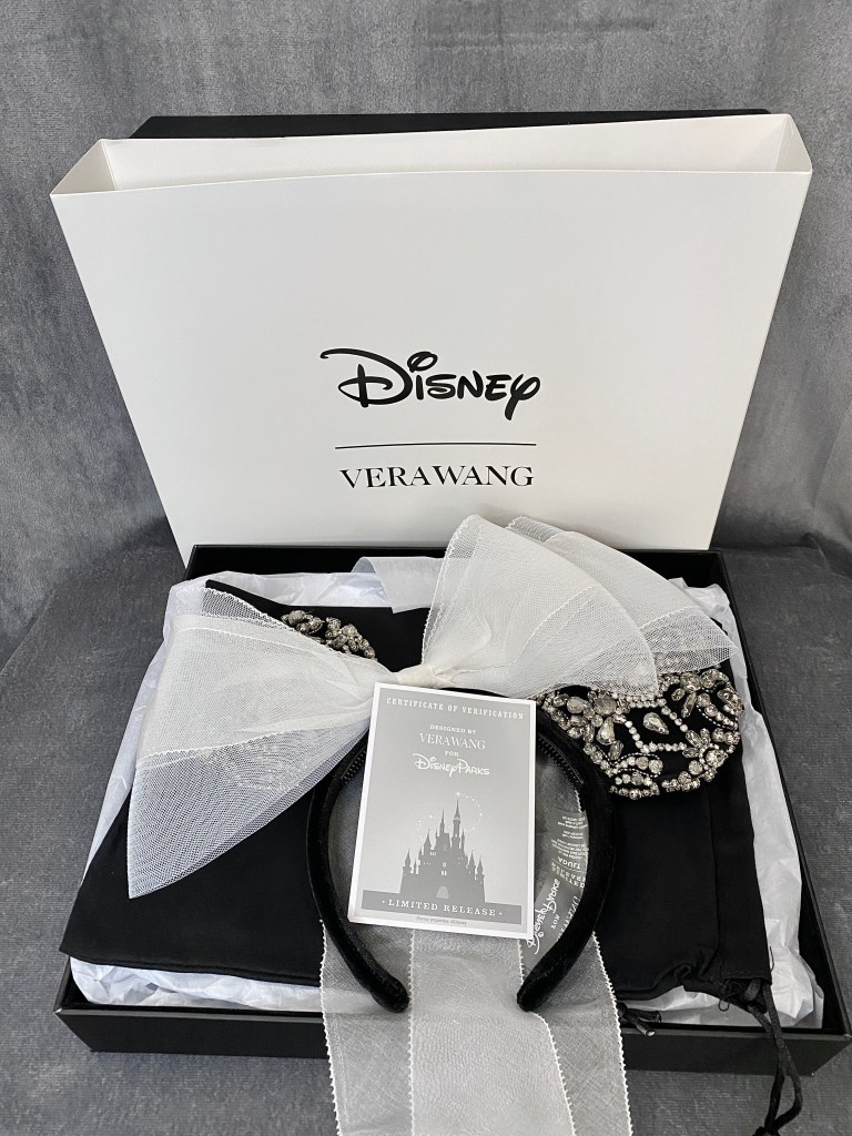 The Vera Wang Disney Designer Ears were released “accidentally” at the Creations Shop at EPCOT on September 20, 2021. The ears were officially released at Ever After in Disney Springs and shopDisney on November 15, 2021 with a Disneyland release at the Dress Shop on November 16. While the ears were a limited release, there was no word on the official numbers produced.