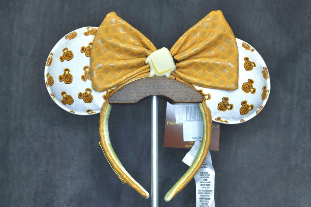 The Mickey Waffle Loungefly Ears were first released at Hong Kong Disneyland on December 4, 2021. The ears featured an all over Mickey Waffle print with a waffle bow and center butter pat. The ears are also lightly scented.