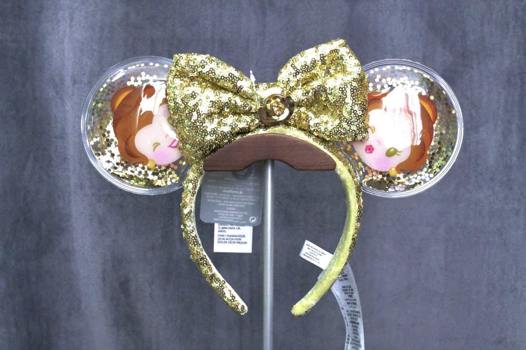 The Belle Ear Headband – Beauty and the Beast was first released on shopDisney on January 24, 2022. The ears feature Belle with different expressions on clear ears filled with gold sequins. The bow and outside of the headband are also covered in gold sequins.