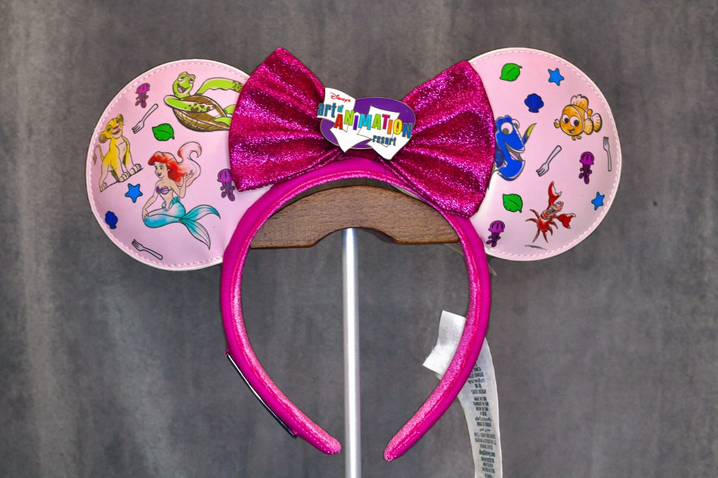 The Art of Animation Color Changing Loungefly Ears were released at the Art of Animation Resort in Walt Disney World on February 26, 2022. The ears feature a faux leather with printed animated colors. The faux leather changes from white to pink when exposed to UV light. The bow is a glitter embellished fabric with the Art of Animation logo emblem in the center.