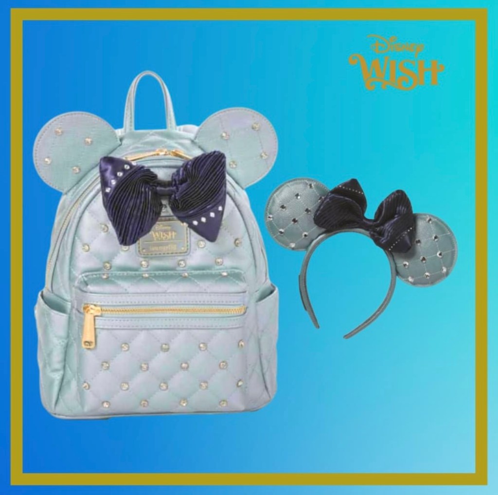 The Disney Cruise Line Wish Inaugural Loungefly Ears were first released for random selection process presale to Wish inaugural voyage guests on March 9, 2022. The ears feature padded Saffiano leather that are metal-rimmed with gemstones and are complemented by a satin navy bow. Also released for presale was a Loungefly mini backpack and other Wish merchandise. The ears and backpack were also available for purchase on shopDisney in July 2022.