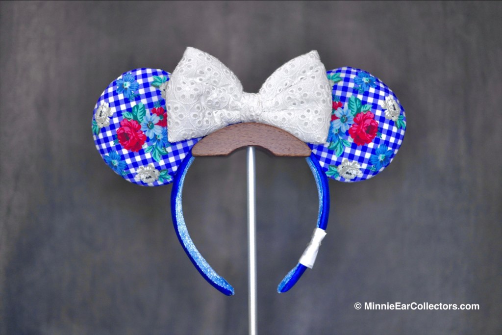 The Blue Gingham Cottage Ears were first released on May 16, 2022 in Disneyland. The ears feature flowers against a blue and white gingham