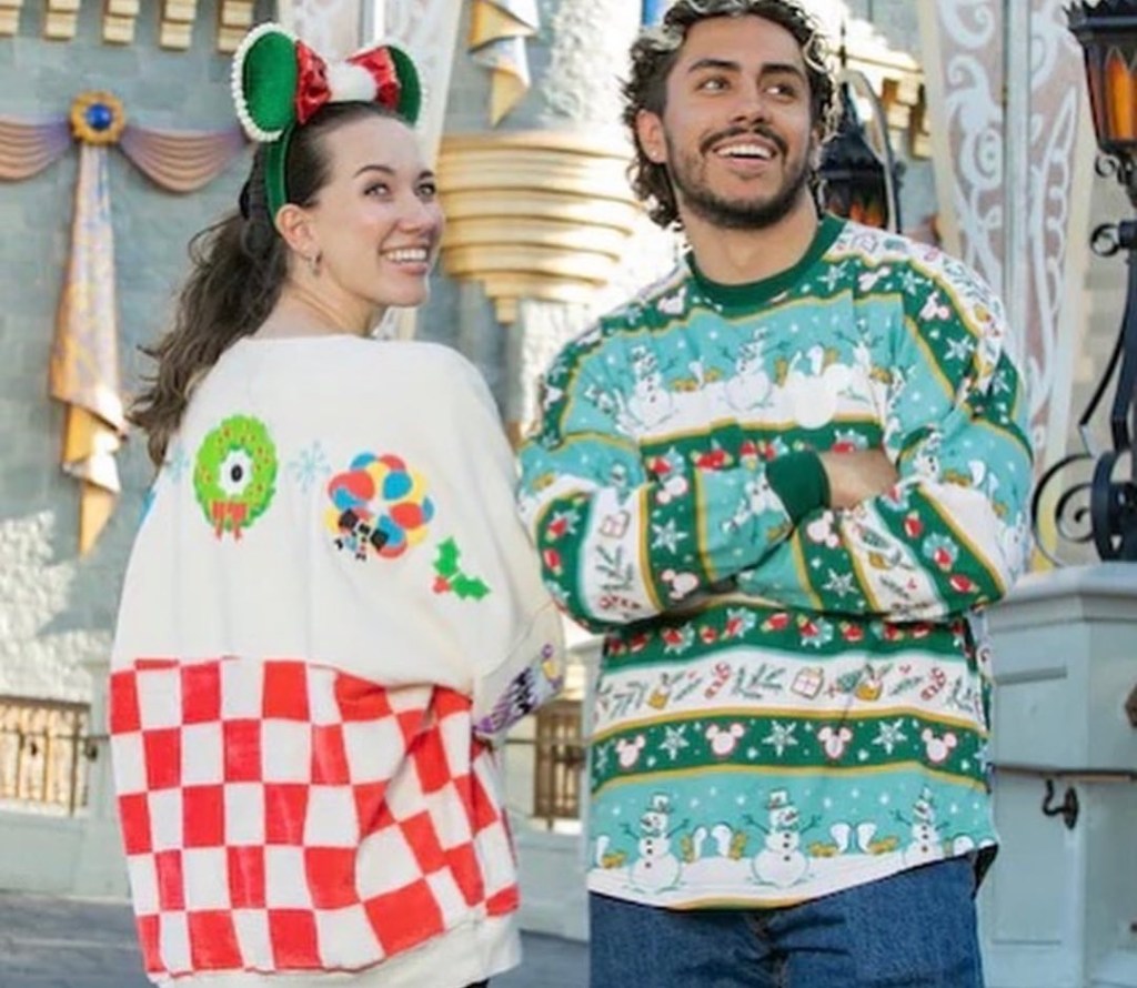 The Pixar collection features a Spirit Jersey with subtle holiday references to Pixar movies across the back and a Toy Story ornaments ear headband topped with a festive bow and present.