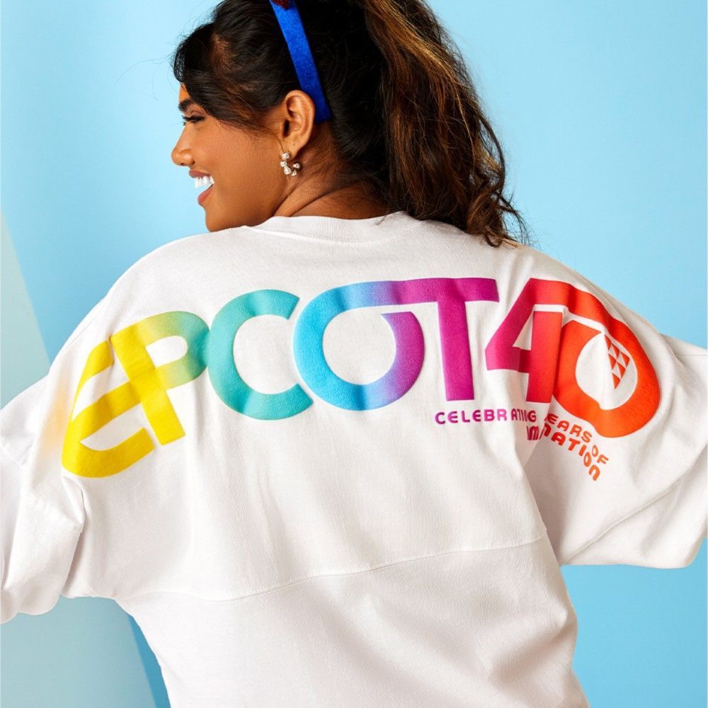 The collection features the EPCOT 40 logo and many of the classic pavilions in whites, blues, and rainbow hues.