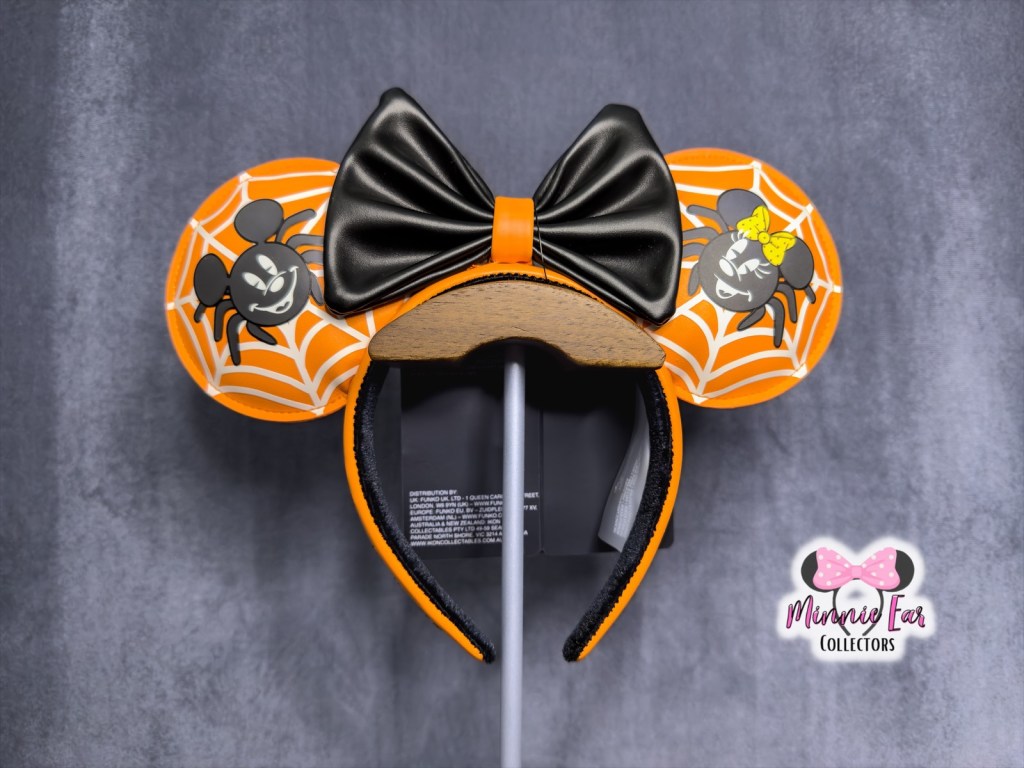 The Loungefly Mickey & Minnie Mouse Spider Glow Ear Headband was first released on October 16, 2022 and gradually by more authorized retailers after that. They were officially available for purchase on the Loungefly website on October 21, 2022. The ears feature orange imitation leather with Mickey and Minnie spiders and glow in the dark webs.