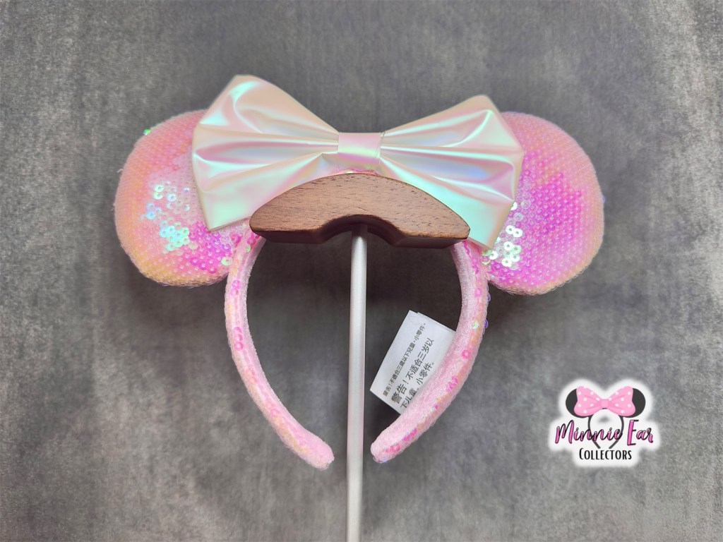 The Pink Sequin with Holographic Bow Ears were released at the Shanghai Disney Resort on January 6, 2023. The ears feature a pink sequin and white holographic bow.