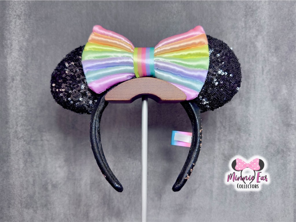 The Tokyo Disney Resort Dream-Go-Round Ears released at Tokyo Disney Resort on April 10, 2023. The ears will also have a new, 40th anniversary tag instead of the traditional small Tokyo tag. The ears feature a black sequin with a light rainbow bow. The side of the headband is embroidered with “Dream-Go-Round.” The 40th anniversary celebrations run April 15, 2023 through March 31, 2024.