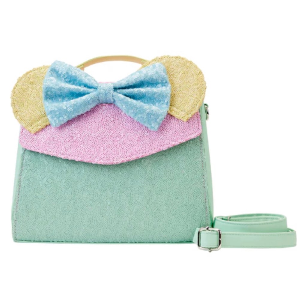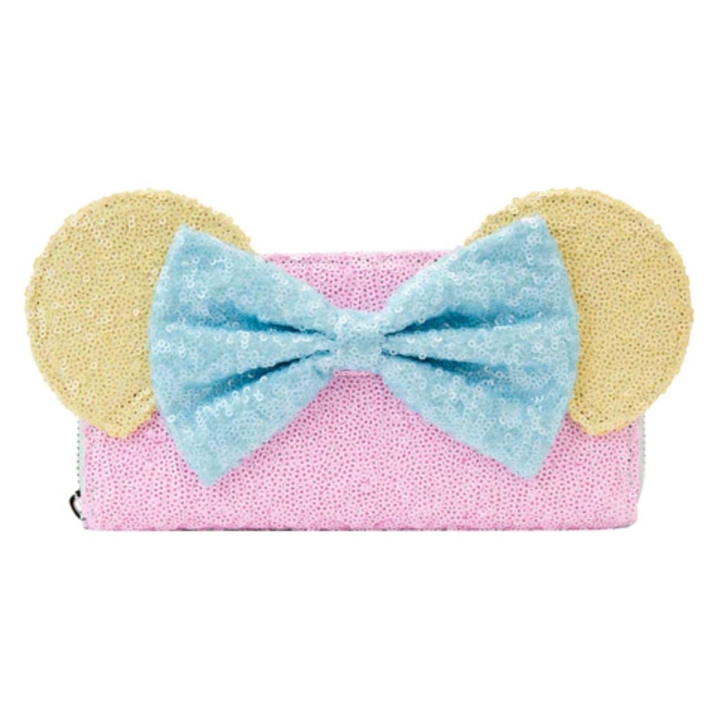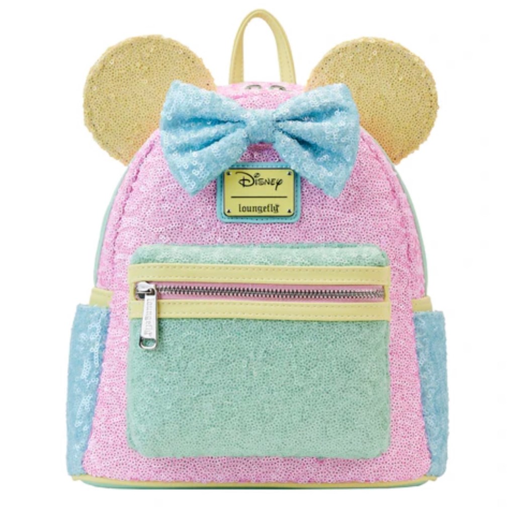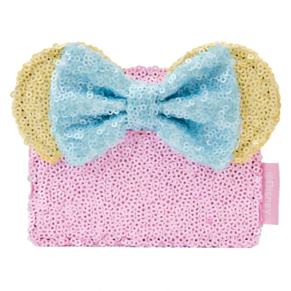 The Loungefly Pastel Minnie Mouse Ears released exclusively on Loungefly.com on March 21, 2022. The ears feature a yellow sequin on the front and a pink sequin on the back. They are finished with a removable blue sequin bow. The ears are a limited edition of 1,700.