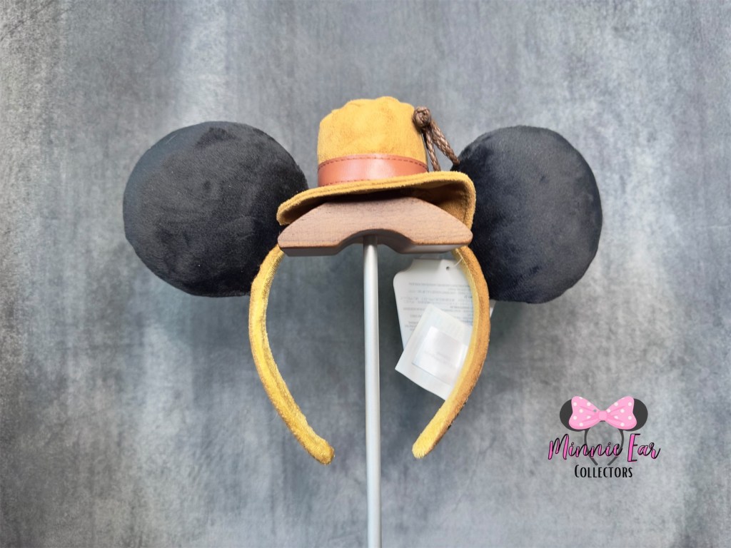 The Indiana Jones Ears were first released for preorder on shopDisney on May 31, 2023 for Disney+ subscriber early access (in addition to several other Indiana Jones merchandise pieces) with an expected ship date of 6/21/23, though the actual ship date was early June. The early access ran 5/31/23 – 6/8/23. The ears are black plush with a faux suede fedora hat with a faux leather band. Attached to the hat is a faux leather braided whip. The side of the ears is embroidered with “Indiana Jones.”