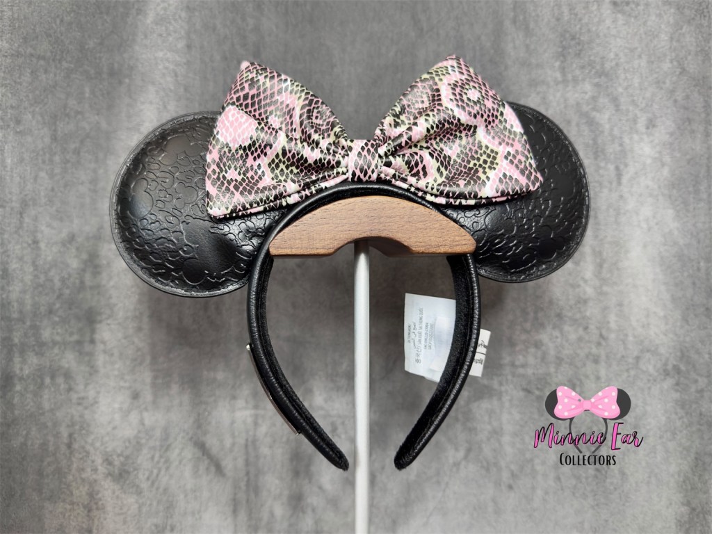 The Wild About Disney Loungefly Ears released at Animal Kingdom on June 12, 2023. The ears feature an embossed faux leather in Mickey animal print. The ears are finished with a faux leather snakeskin print bow.