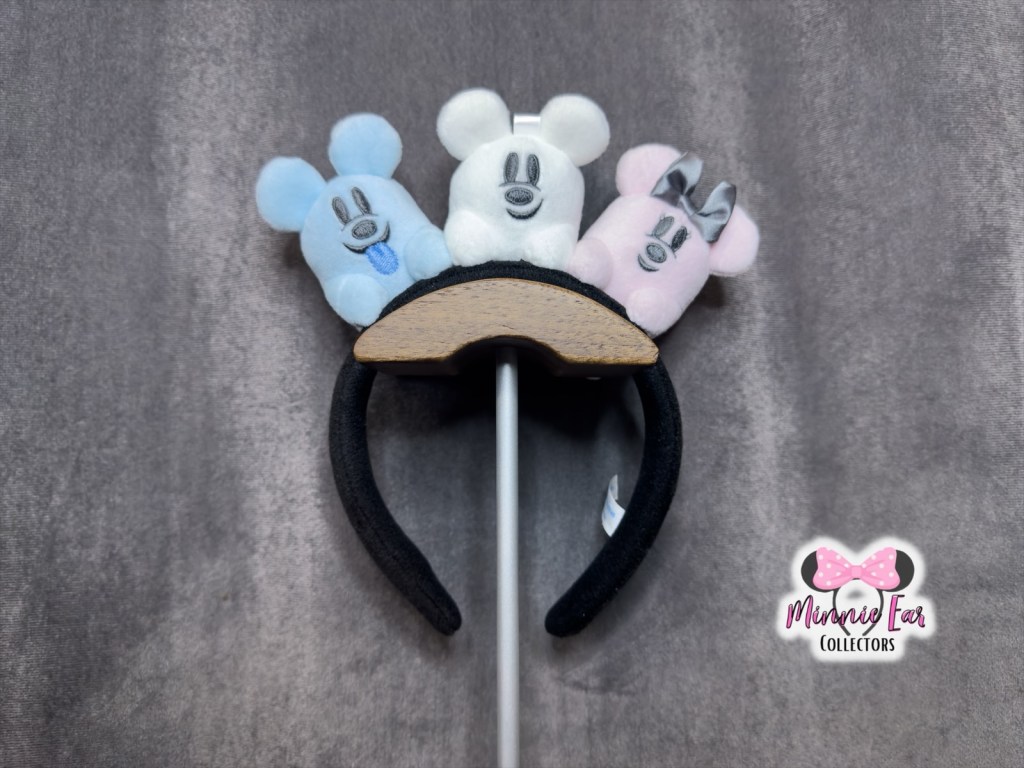 The Colorful Ghosts Headband released as part of Disney Halloween at Tokyo Disney Resort on September 14, 2023. The headband features a blue and white Mickey ghost along with a pink Minnie ghost attached to a black headband. This headband is part of the Ghost Collection, one of three collections released this year.