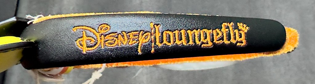 The “ears” on this headband are candy corn shaped with Mickey and Minnie Mouse faces. In addition, Minnie’s bow is candy. The bow is removable and features sparkles and glitter details with candy corn colors. The side of the headband is embroidered with Loungefly on the side.