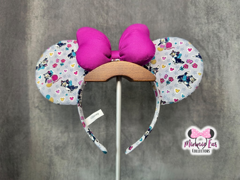 The Vera Bradley Disney Mickey Mouse Piccadilly Paisley Ears were first released on July 20, 2023 online at VeraBradley.com and in the Vera Bradley shop at Disney Springs. This collection (as of now), is not sold in the parks. The ears feature the “Playful Figaro” print with a pink plush bow. They are a part of a large Piccadilly Paisley collection that stars Mickey, Minnie, Pluto, and Figaro.