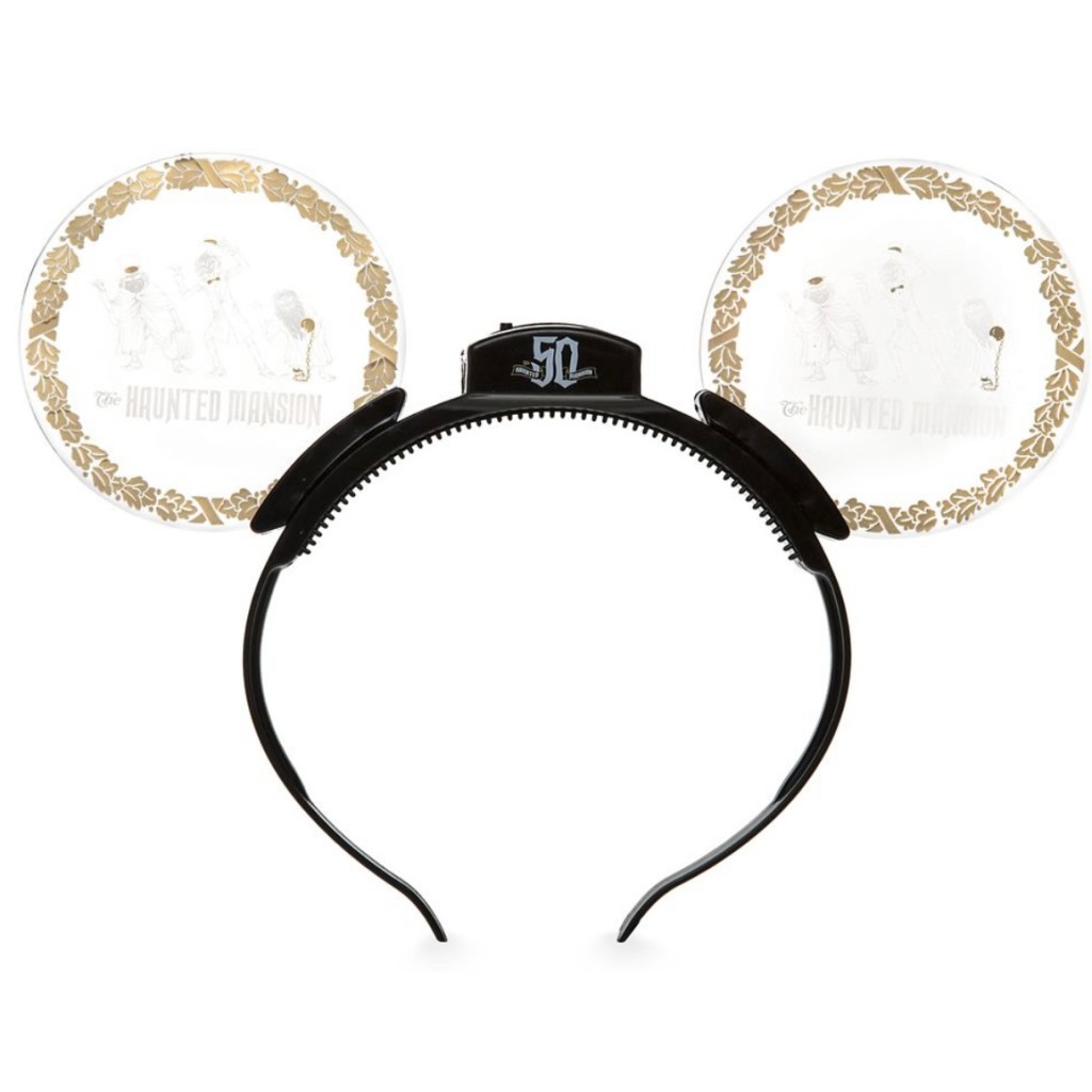 The Haunted Mansion 50th Anniversary Light-Up Ears were first released on August 17, 2019. The ears were released to celebrate the 50th anniversary of The Haunted Mansion which was on August 9, 2019. The ears are plastic light-up ears that feature “The Hitchhiking Ghosts” on both ears.