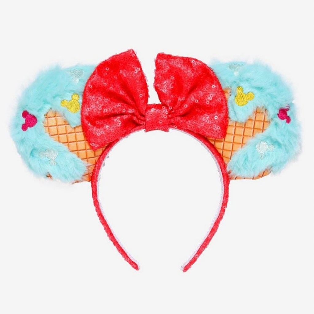The Minnie Mouse Ice Cream Cone Ears – BoxLunch Exclusive were available exclusively from BoxLunch in 2021. The ears feature an ice cream cone design with embroidered Mickey head details.