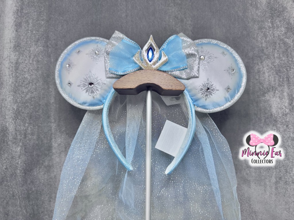 The Blue Elsa Veil Ears were first released at World of Disney is Disney Springs on September 28, 2023. The ears are made of an icy blue satin with and gemstone icy embellishments. The center of the ears are completed with Elsa’s crown, a double bow, and shimmery veil.