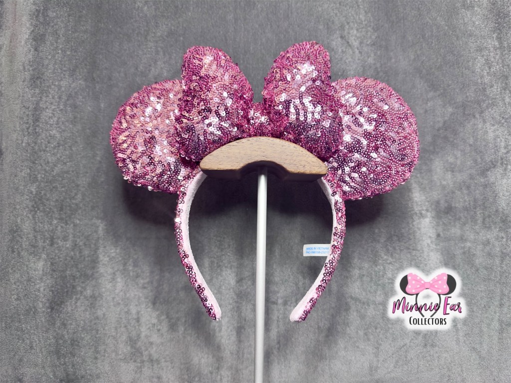 The Pink Sequin Ears with Puffy Sequin bow released at Tokyo Disney Resort on October 26, 2023. The ears feature a light pink sequin with a puffy pink sequin bow.