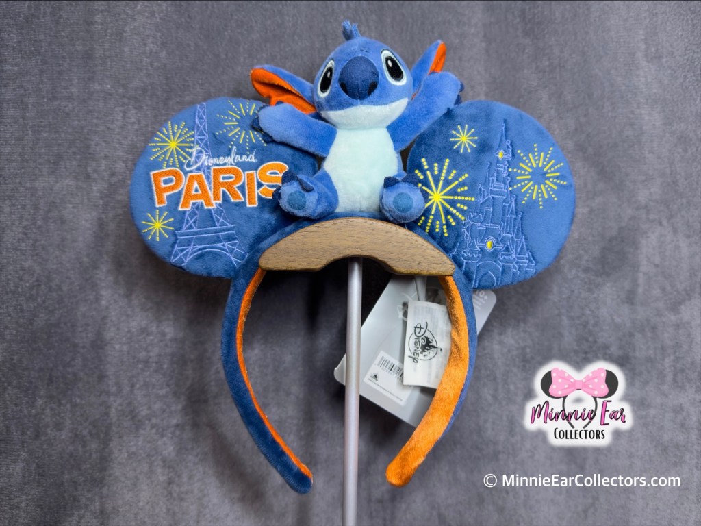 The Disneyland Paris Stitch Ears were released in Disneyland Paris on January 8, 2024. They were also released later in January in the France pavilion at EPCOT. The ears are blue plush with embroidery of Disneyland Paris, the Eiffel Tower, Le Château de la Belle au Bois Dormant, and fireworks. At the center is a small plush Stitch.