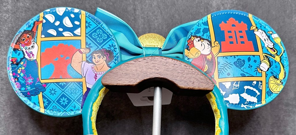 The runDisney Wine & Dine Half Marathon Ears first released at the runDisney Health & Fitness Expo at ESPN Wide World of Sports Complex on November 2, 2023. The four sides of the ears matched this year’s theme featuring Figment/EPCOT and Alice in Wonderland/Magic Kingdom on the front and Encanto/Animal Kingdom and Beauty and the Beast/Hollywood Studios on the back. There is also a striped fabric bow with a 2023 Wine & Dine emblem at the center.