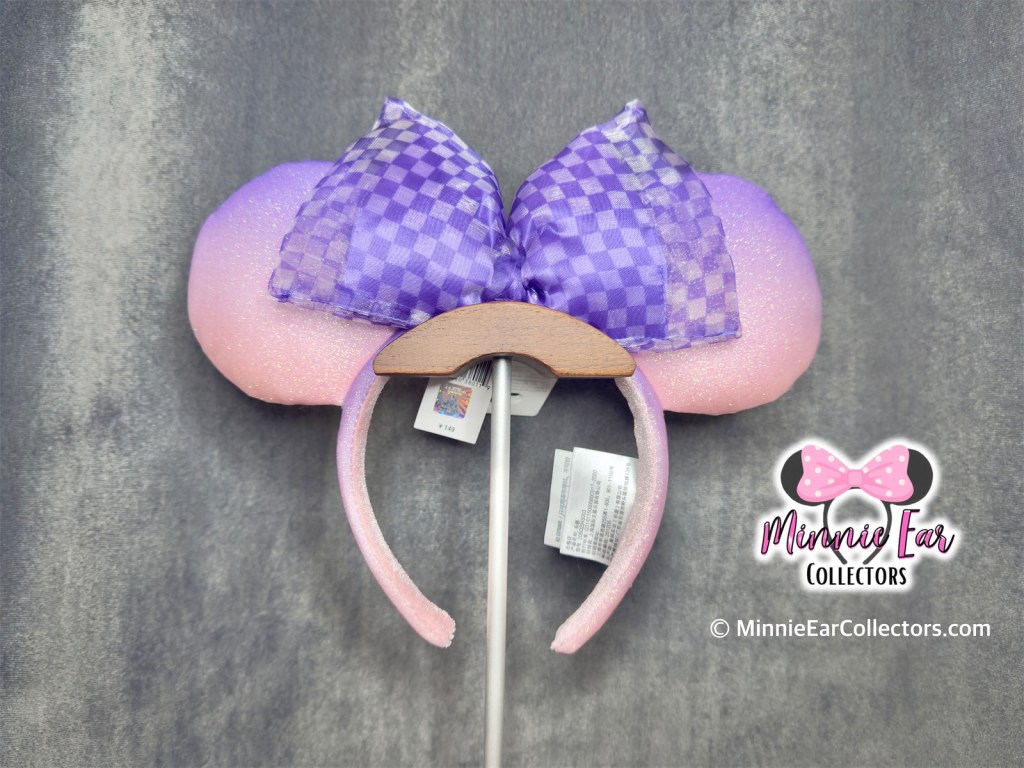 The 2024 Spring Color Fest Ears released at Shanghai Disney Resort on March 6, 2024. The ears are a purple ombré glitter with a purple checkered bow. The ears are embroidered with “Shanghai Disney Resort” on the headband so they will be exclusive.