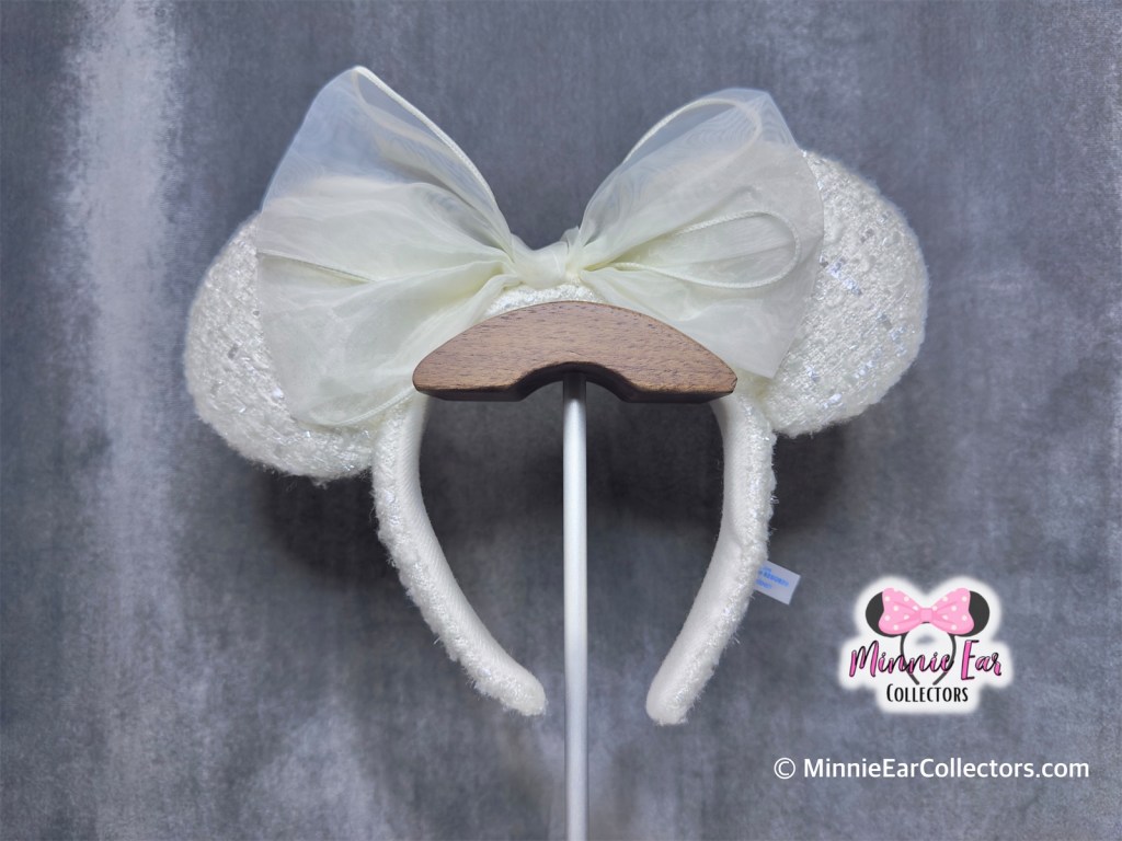 The White Tweed Ears with Chiffon Bow release at Tokyo Disney Resort on April 11, 2024. The ears are made of a shades of white tweed fabric. At the center is matching white chiffon bow. The ears are exclusive to Tokyo.