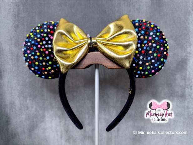The BaubleBar Minnie Mouse Disney Multicolored Gem Ears were released on the BaubleBar website on May 6, 2024. The ears are black velvet and are accessorized with multicolored glass and acrylic stones. At the center is a gold bow. The ears are an officially licensed product sold exclusively from BaubleBar.
