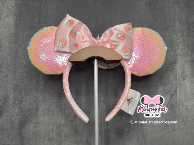 The Summer Mickey & Friends Strawberry Ears first released at Shanghai Disney Resort on June 21, 2024. The ears feature a light pink shimmery sequin and headband. At the center is a double layer pink bow that is embellished with strawberries.