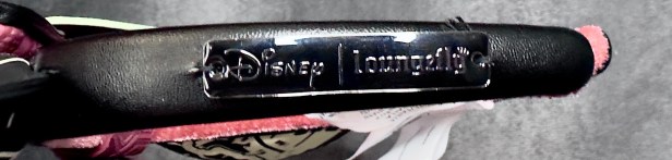 The ears are made of simulated leather with black and cream glow-in-the-dark printing of the Hollywood Tower Hotel on one side and lightning on the other. At the center is a red bow with a lenticular service elevator emblem at the center. On the headband is a metal Loungefly plaque.