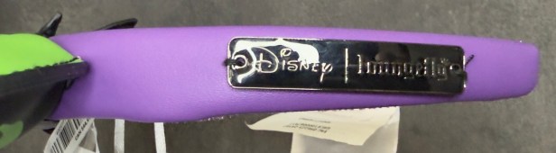 The ears are made of simulated leather and feature Oogie Boogie over Carthay Circle on one side and villain silhouettes on the other. At the center is a pleated bow.