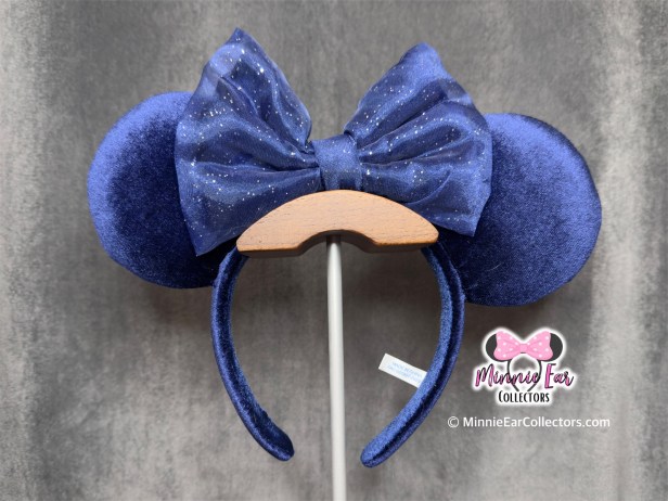 The Navy Ears were released at Tokyo Disney Resort on February 13, 2025. The ears feature a soft plush navy fabric. There is a navy bow at the center with a sheer, glittery bow covering as well.