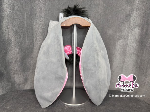 The Eeyore Ears Headband released on March 21, 2025 in Disneyland. The long ears are made to replicate Eeyore’s ears while there is a long plush tail that hangs down the back. A tuft of black fur sits at the top of the headband and at the end of Eeyore’s tail along with a pink satin bow.