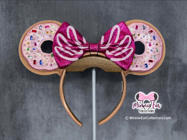 The BaubleBar Minnie Mouse Pink Donut Ears are “frosted” with pink icing and sprinkled with a variety of multi colored gem “sprinkles.”