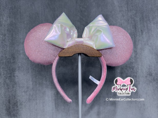 The Pink Holographic Ears released at Tokyo Disney Resort on May 8, 2025. The ears are made of pink holographic fabric. A white holographic bow is at the center of the ears.