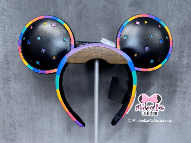 The ears are made of simulated leather printed with embroidered colorful emblems. The edge of the ears and headband is made of a rainbow pattern.