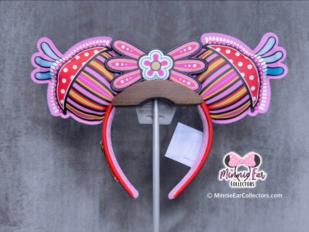 The Junkanoo ears are made of Loungefly simulated leather with an abstract Minnie design in the Junkanoo style. The back of the ears are printed with “Disney Lookout Cay at Lighthouse Point.” The Junkanoo collection celebrates a cultural festival of The Bahamas that features colorful costumes, music, and dancing.