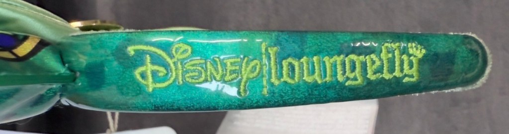 The ears are made of vinyl leather with stained glass Lotus crown details on the front. On the back, “Tiana” is embroidered on one ear and Ray is printed on the other. A light green satin bow with a Fleur De Lis emblem is at the center of the ears. The Loungefly logo is embroidered on the side of the headband. The ears featured a new pink princess tag with no mention of being limited edition like the previous releases. A matching Loungefly mini backpack was also released.
